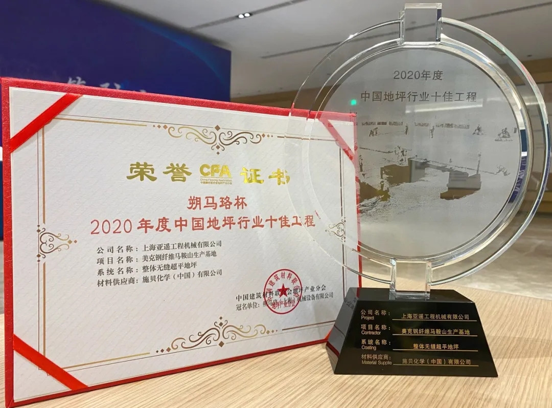 馬鞍山二期廠房整體地坪項目獲得中國地坪十佳工程獎項