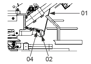 將調節刀片角度的鋼絲繩(右圖01位)從手柄管子凹槽部完全拉出,并且松開上面的螺母穿進撥叉槽孔內,擰上鎖緊螺母(右圖02位)。擰動調節手輪(右圖03位)保持鋼絲繩的適度松弛(手輪轉動一圈左右)撥叉在無負荷狀態(右圖04位)而且刀片處于水平(0℃傾斜)。